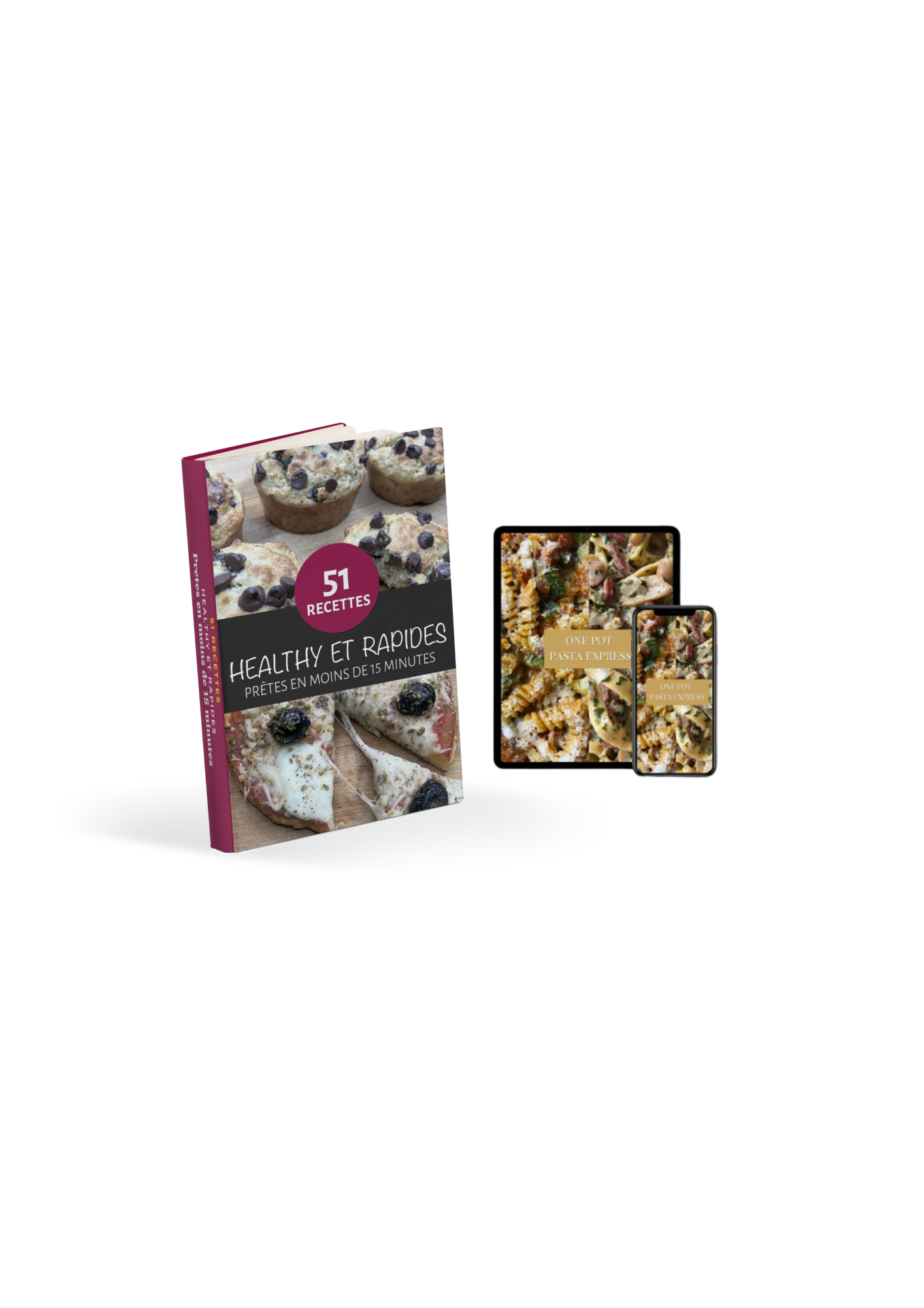 Grâce à ce pack tu auras sous la main 71 recettes équilibrées et rapides, prêtes en moins de 20 minutes !